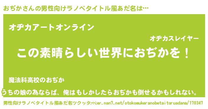 | 胡散臭い通販商品みたいなあだ名 | 『あなたにだけ特別に提供する100年もののヴィンテージワイン…その名も「おぢか」』 |