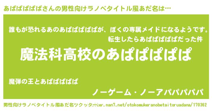 | 女子向けラノベタイトル風あだ名 | 『あぱぱぱぱぱアンティーク』 |