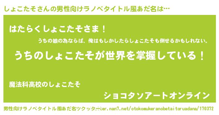 | ヒーロー風カッコイイあだ名 | 『スーパーショコタソ』『ネオショコタソ』 |