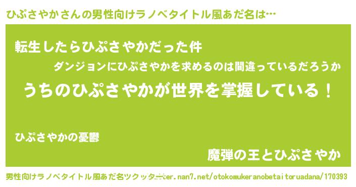 ひぷさやかさんの男性向けラノベタイトル風あだ名をツクッター!