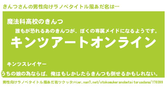 | 胡散臭い通販商品みたいなあだ名 | 『モテモテ間違いなし霊験あらたかなお札…その名も「きんつ」』 |