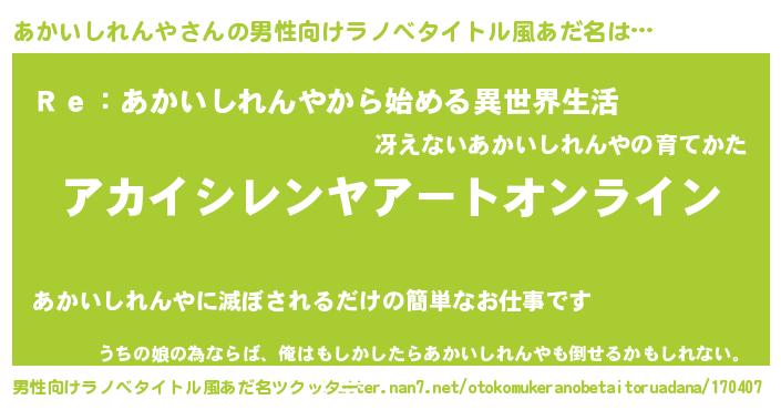 あかいしれんやさんの男性向けラノベタイトル風あだ名をツクッター!