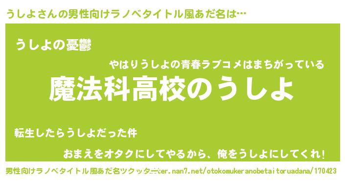 | 女子向けラノベタイトル風あだ名 | 『うしよなんてお断りですっ。』 |