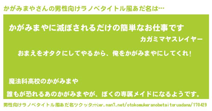 | ヘコむあだ名 | 『かがみまや(小並感)』『かがっふぃ~』 |