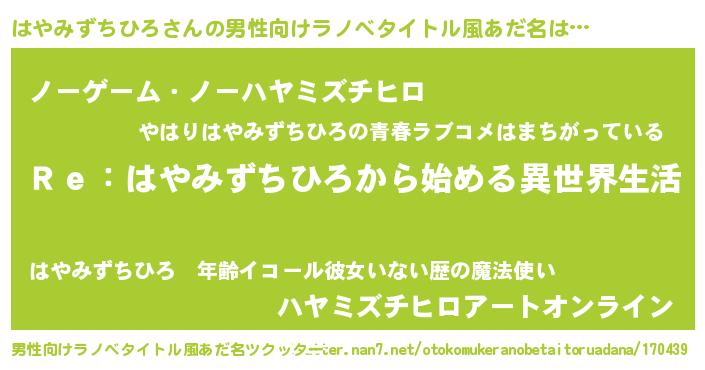 | 女子向けラノベタイトル風あだ名 | 『はやみずちひろストレイドッグス』 |