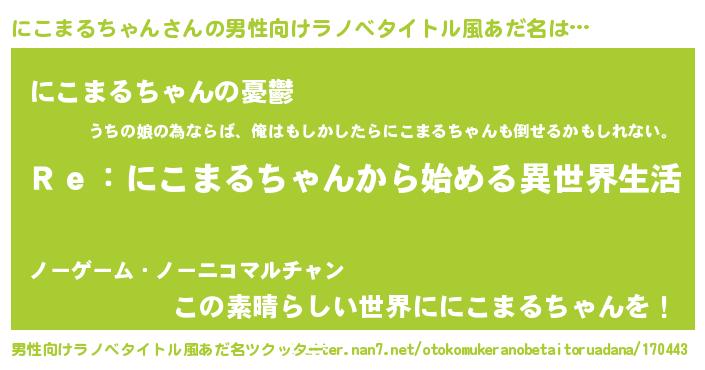 | 女子向けラノベタイトル風あだ名 | 『にこまるちゃんストレイドッグス』 |