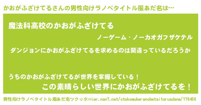 | 女子向けラノベタイトル風あだ名 | 『かおがふざけてるの卵を拾いまして』 |