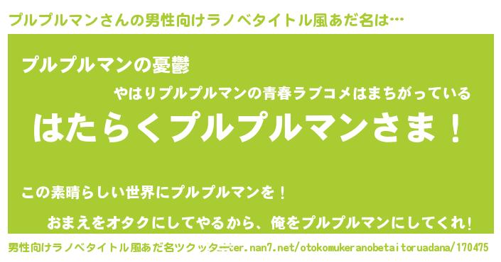 | 胡散臭い通販商品みたいなあだ名 | 『必ず成功するブレスレット…その名も「プルプルマン」』 |