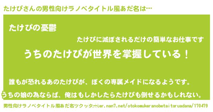 | 女子向けラノベタイトル風あだ名 | 『男装たけぴの憂鬱な任務』 |