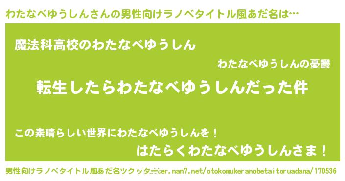 | 女子向けラノベタイトル風あだ名 | 『わたなべゆうしんの玉の輿計画!』 |