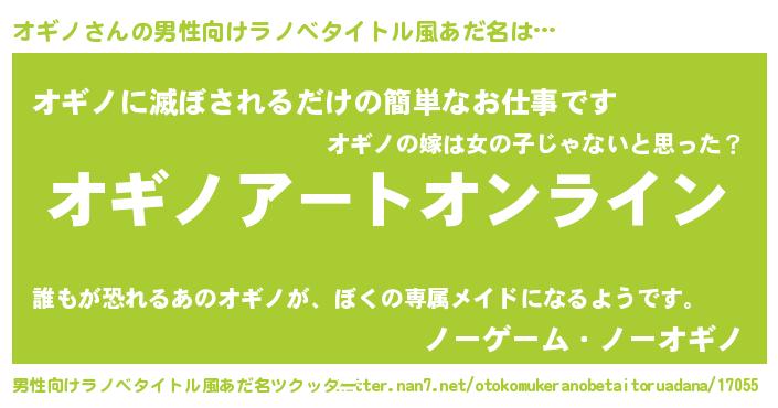 | 女子向けラノベタイトル風あだ名 | 『オギノ姫と円卓の騎士』 |
