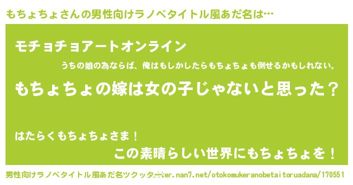 | 意味不明あだ名 | 『とにかく怪しいもちょちょ』 |