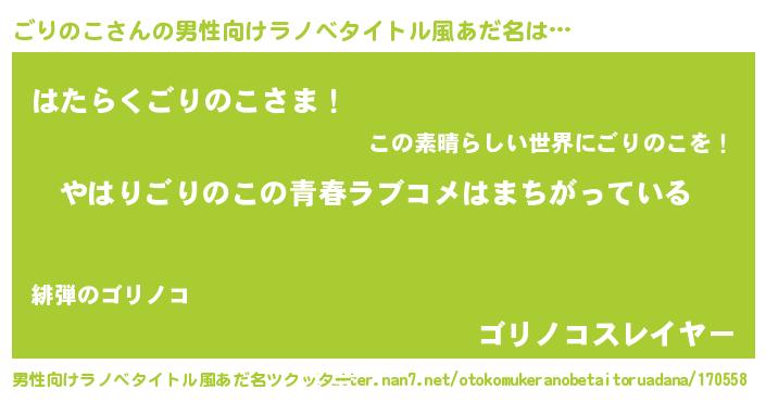 | 胡散臭い通販商品みたいなあだ名 | 『幸せが訪れる高級そうな壺…その名も「ごりのこ」』 |