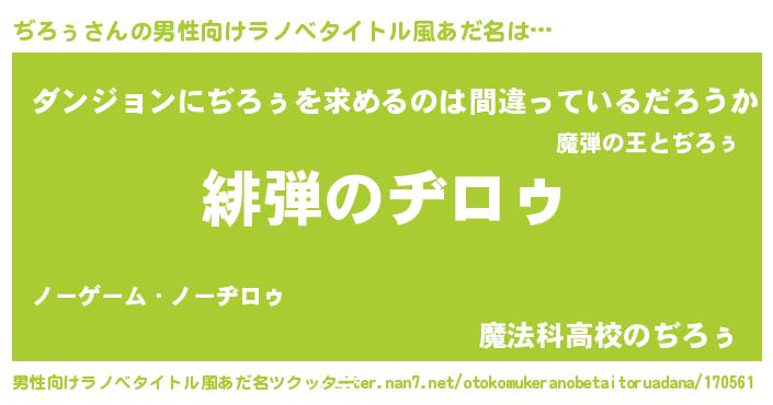 | ヒーロー風カッコイイあだ名 | 『黄金騎士ヂロ』『超時空戦士ヂロゥ』 |