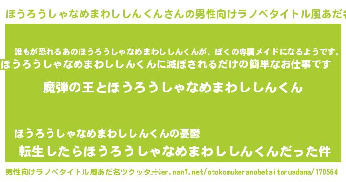| 女子向けラノベタイトル風あだ名 | 『ほうろうしゃなめまわししんくんが死なない童話 林檎のほうろうしゃなめまわししんくんの診療簿』 |
