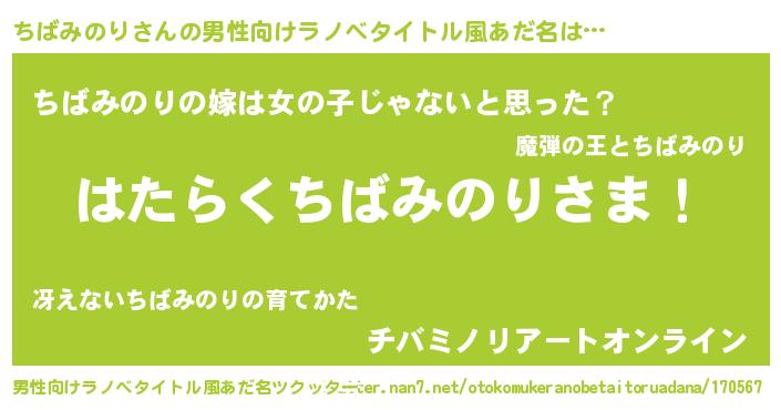 | 胡散臭い通販商品みたいなあだ名 | 『信頼と実績のサプリメント…その名も「ちばみのり」』 |