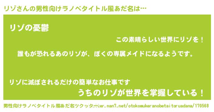 | ヘコむあだ名 | 『リゾ(遠い目)』『リゾもー』 |