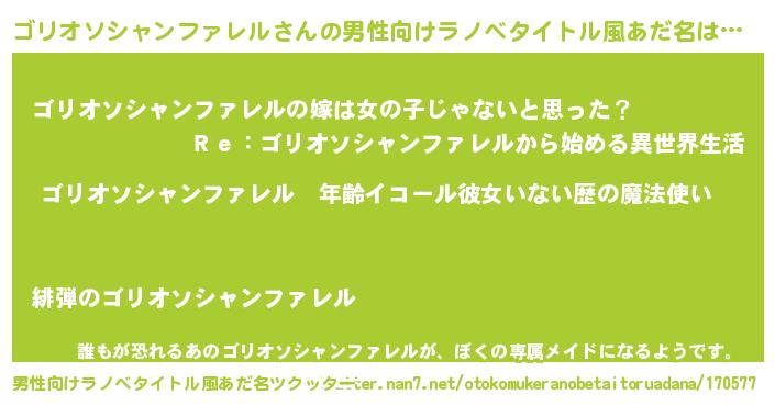 | 胡散臭い通販商品みたいなあだ名 | 『全米が絶賛したサプリメント…その名も「ゴリオソシャンファレル」』 |