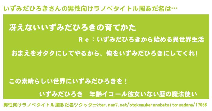 | 胡散臭い通販商品みたいなあだ名 | 『100人中100人が認めたマグネット磁石…その名も「いずみだひろき」』 |