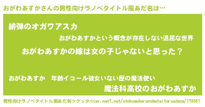 | 意味不明あだ名 | 『とにかく怪しいおがわあすか』 |