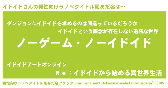 | 女子向けラノベタイトル風あだ名 | 『死神イドイドの再婚』『闇のイドイド』 |
