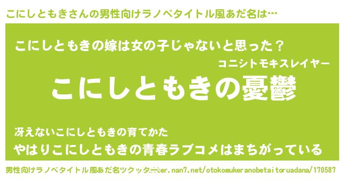 | 肩書あだ名 | 『こにしともきCEO』『こにしともき班長』 |