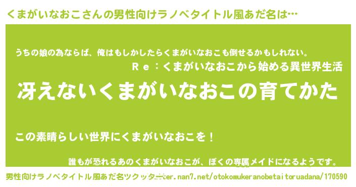 くまがいなおこさんの男性向けラノベタイトル風あだ名をツクッター!