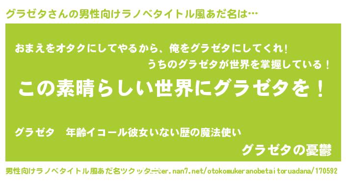 | 意味不明あだ名 | 『住所不定無職グラゼタ(40歳)』 |
