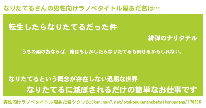 | ファンタジー風あだ名 | 『エターナルナリタテルー』『ゼナリトゥ』 |