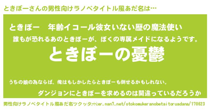 | 女子向けラノベタイトル風あだ名 | 『(仮)ときぼーのやんごとなき事情』 |