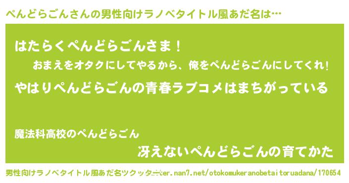 | 胡散臭い通販商品みたいなあだ名 | 『世界が平和になる高級そうな壺…その名も「ぺんどらごん」』 |