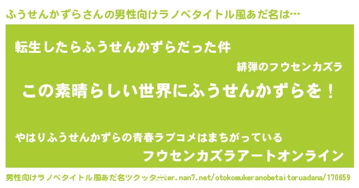 | 女子向けラノベタイトル風あだ名 | 『悪役ふうせんかずらに転生したようですが、知った事ではありません』 |