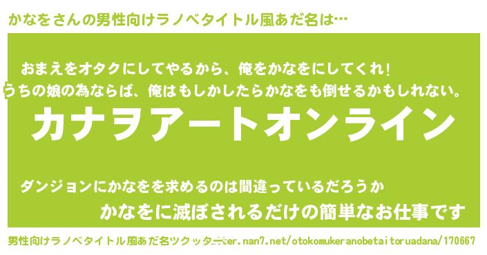 | 女子向けラノベタイトル風あだ名 | 『かなを姫と円卓の騎士』『かなを恋絵巻』 |