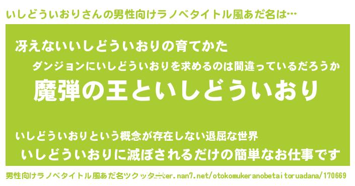 | 女子向けラノベタイトル風あだ名 | 『いしどういおりが死なない童話 林檎のいしどういおりの診療簿』 |