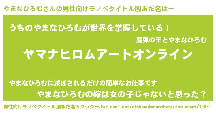 | 女子向けラノベタイトル風あだ名 | 『誰かこのやまなひろむを説明してください! ~契約から始まるウェディング~』 |
