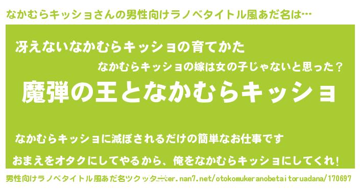 | 意味不明あだ名 | 『住所不定無職なかむらキッショ(11歳)』 |