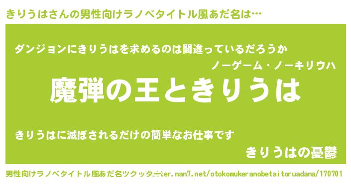 | 意味不明あだ名 | 『住所不定無職きりうは(91歳)』 |