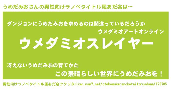 | ヒーロー風カッコイイあだ名 | 『暗黒騎士ウメ』『仮面ウメダー』 |