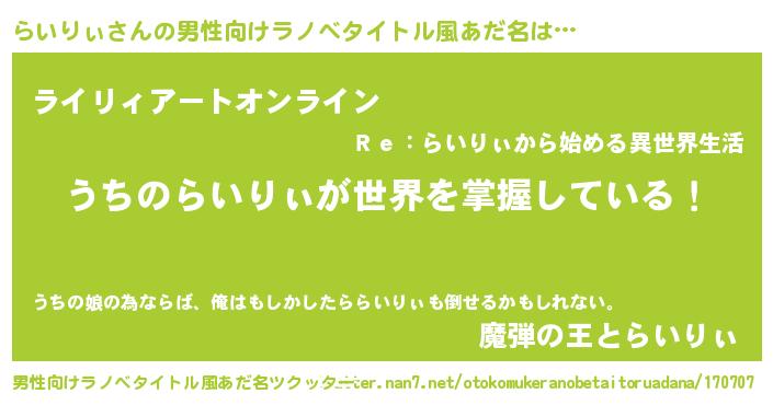 | 恥ずかしいあだ名 | 『プリティーらいりぃ』『らいっちょ』 |