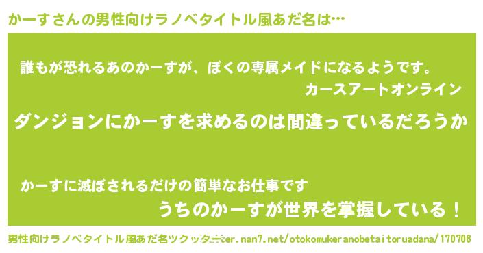 | 女子向けラノベタイトル風あだ名 | 『かーすは平凡を望む』 |