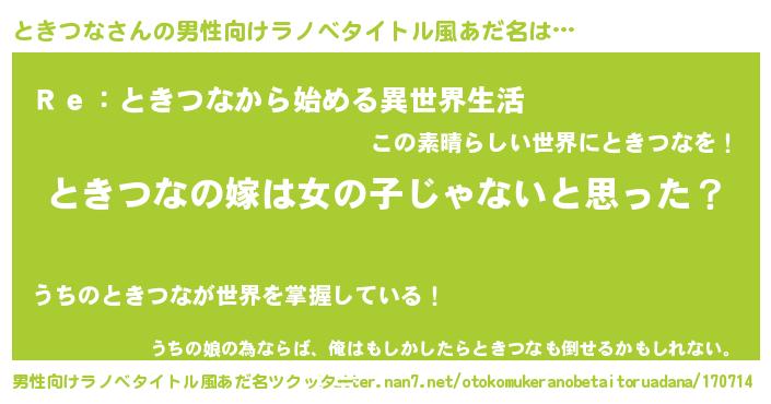 | 女子向けラノベタイトル風あだ名 | 『ときつな様がみてる』 |