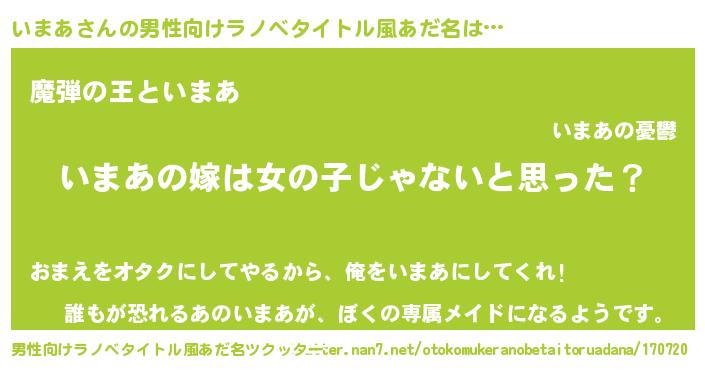 | ヘコむあだ名 | 『いまを』『いまあ(小並感)』 |