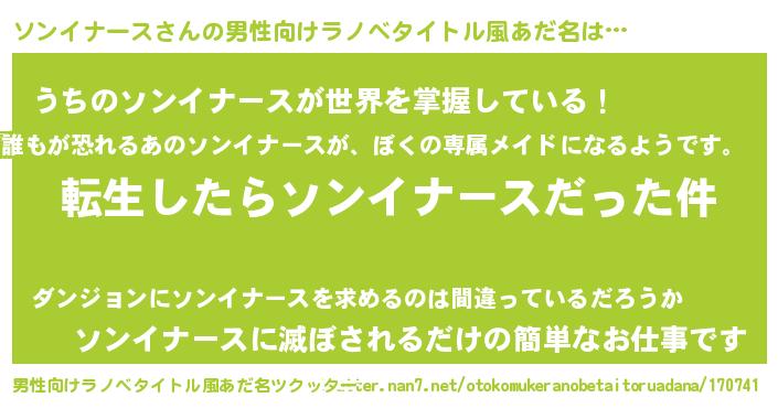 | 胡散臭い通販商品みたいなあだ名 | 『来世でも幸せになれる水素水…その名も「ソンイナース」』 |