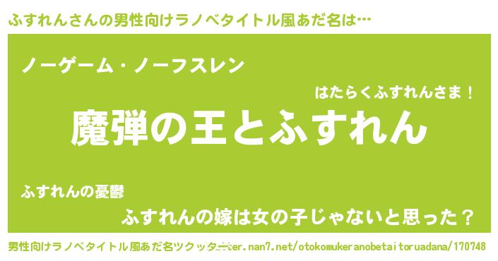 | 意味不明あだ名 | 『住所不定無職ふすれん(85歳)』 |