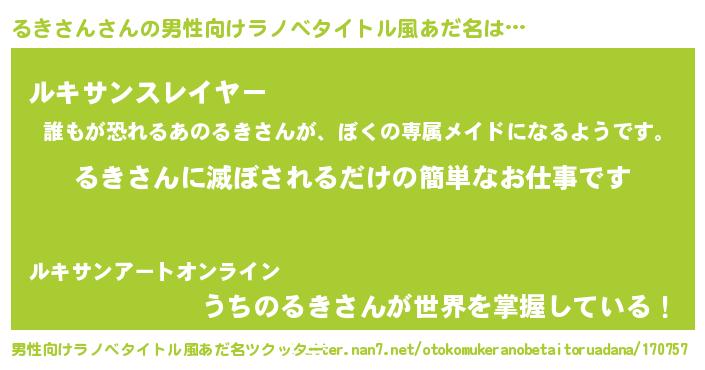 るきさんさんの男性向けラノベタイトル風あだ名をツクッター!