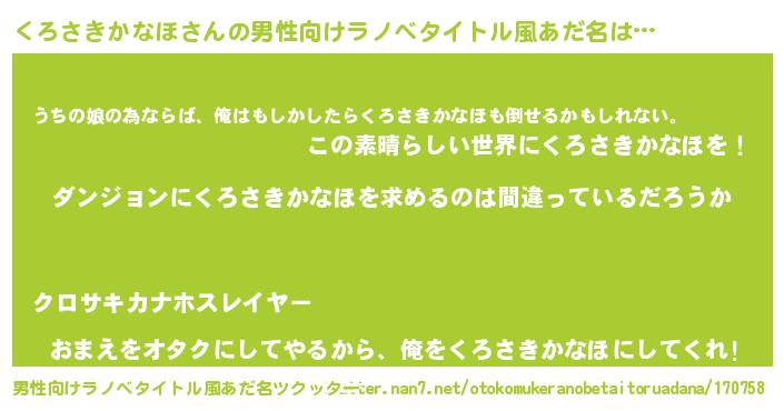 | 胡散臭い通販商品みたいなあだ名 | 『信頼と実績のペンダント…その名も「くろさきかなほ」』 |