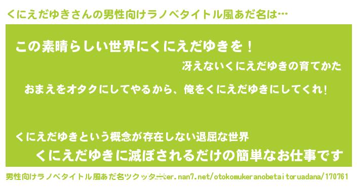 | 女子向けラノベタイトル風あだ名 | 『くにえだゆき夫妻のなれそめ』 |