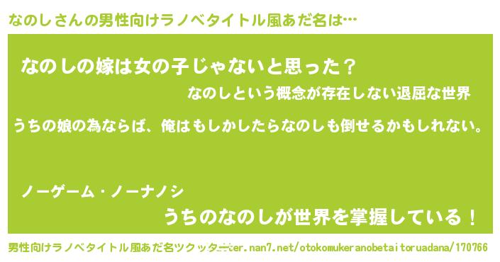 | 女子向けラノベタイトル風あだ名 | 『なのし伯爵の花嫁』『死神なのしの再婚』 |