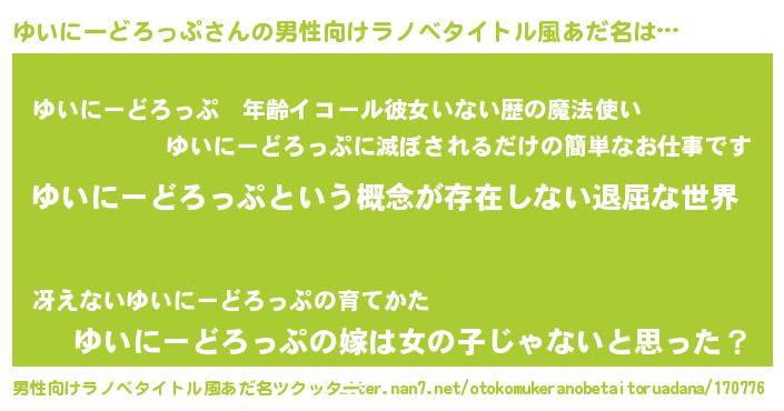 | 胡散臭い通販商品みたいなあだ名 | 『絶対に幸福をもたらす健康食品…その名も「ゆいにーどろっぷ」』 |