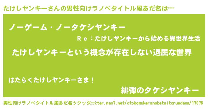| 意味不明あだ名 | 『永久保存たけしヤンキー』 |